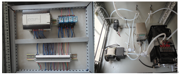 本裝置以PLC作為控制中樞,實(shí)現(xiàn)焦?fàn)t煤氣的取樣、反吹、過(guò)濾及O2氣體含量的自動(dòng)分析。當(dāng)“PLC”接收“分析”的指令信號(hào)后,裝置既自動(dòng)執(zhí)行“分析測(cè)量程序”,這時(shí)進(jìn)樣電動(dòng)球閥自動(dòng)打開,啟動(dòng)取樣真空氣泵,從爐膛或管道中抽出樣氣完成樣氣的采集,樣氣經(jīng)過(guò)伴熱帶沿主流路繼續(xù)完成凈化、脫濕、脫硫等處理,保證進(jìn)入儀器之前的樣氣達(dá)到超凈、恒溫的要求,完成氣體成分的自動(dòng)分析并輸出標(biāo)準(zhǔn)電流信號(hào),根據(jù)程序設(shè)定完成對(duì)爐膛或管道中氣體成分的自動(dòng)檢測(cè)。當(dāng)“PLC”接收“反吹”的指令信號(hào)后,裝置既自動(dòng)執(zhí)行“凈化反吹程序”, 同時(shí)另一路取樣裝置啟動(dòng),這時(shí)進(jìn)樣電動(dòng)球閥自動(dòng)打開,高壓反吹氣流和震動(dòng)控制對(duì)取樣管路進(jìn)行震動(dòng)及高壓反吹,確保取樣管線通暢。