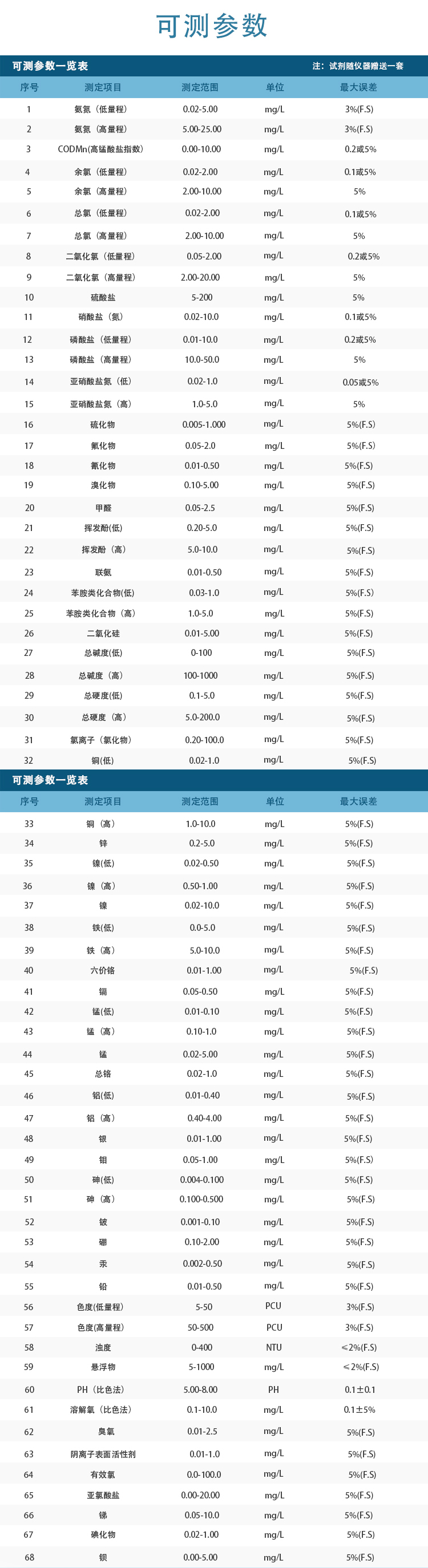 水質(zhì)檢測分析儀器技術(shù)參數(shù):